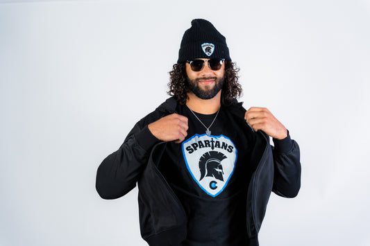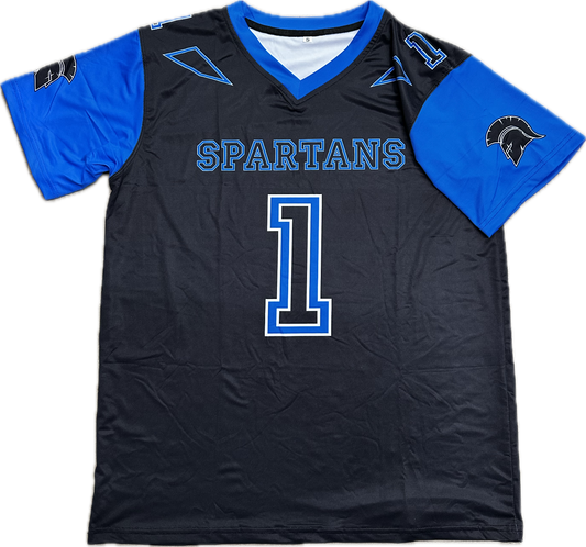 Spartans Blue on Black Logo Short Sleeve black T-shirt, soft cotton/poly blend (67000/B)